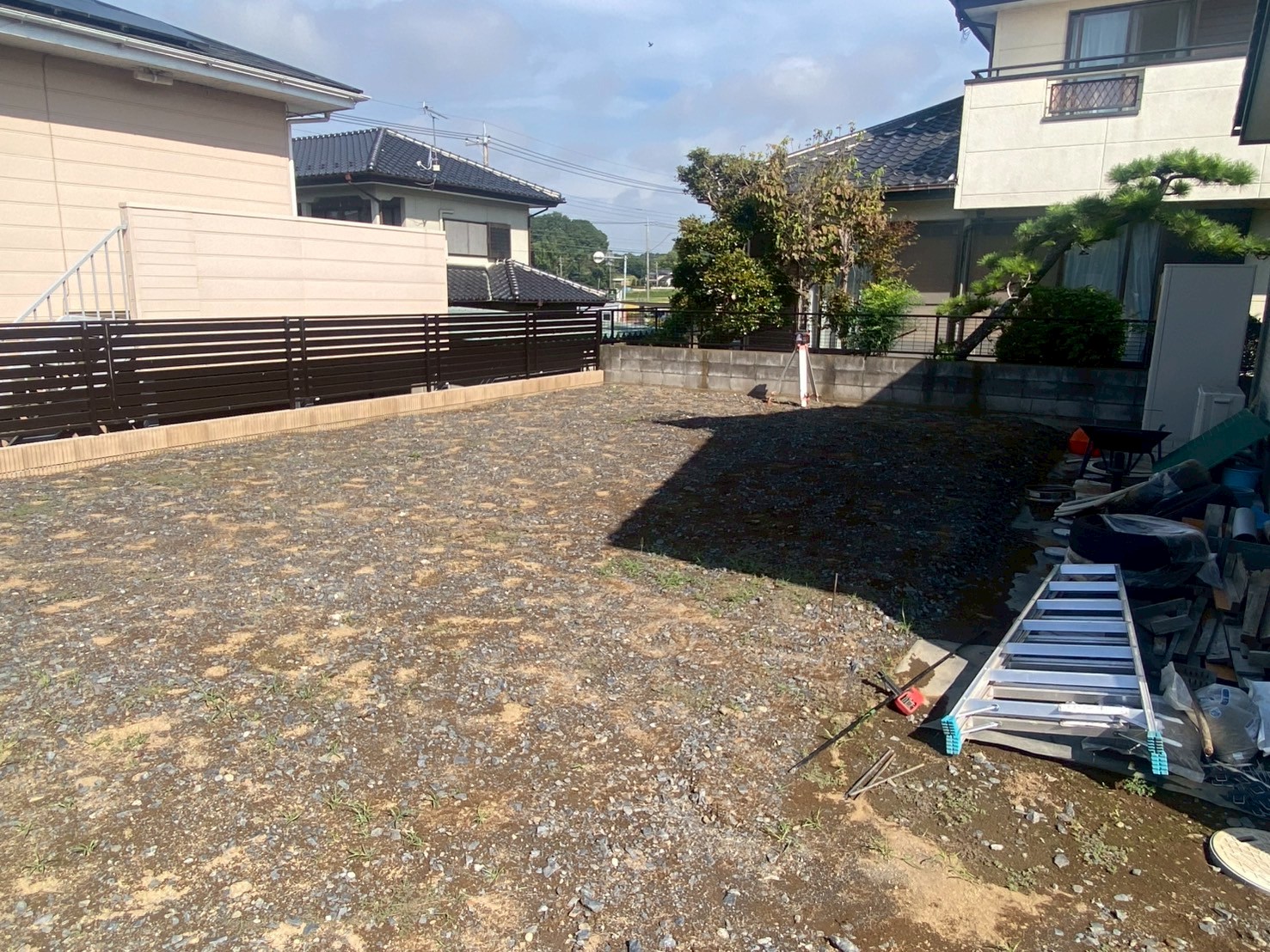 今回はオプションなしのシンプル施行ですが、土間工事がシャッターから1mほど前に出るよう工事しました。
