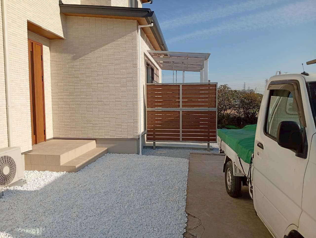 玄関側からの目線を遮るため、目隠しフェンスとして<フェンスAB>を設置しました。